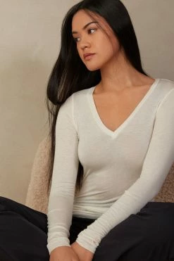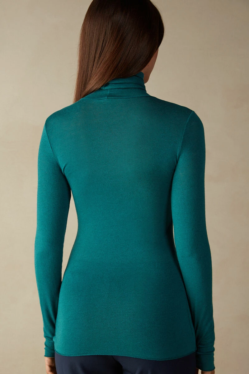 Long-sleeve top in soft modal cashmere ultralight with a high-neck design.