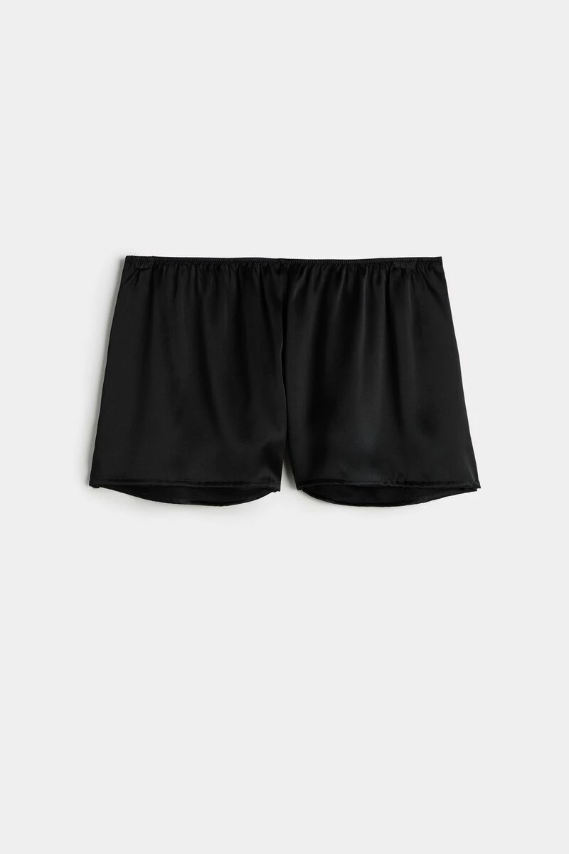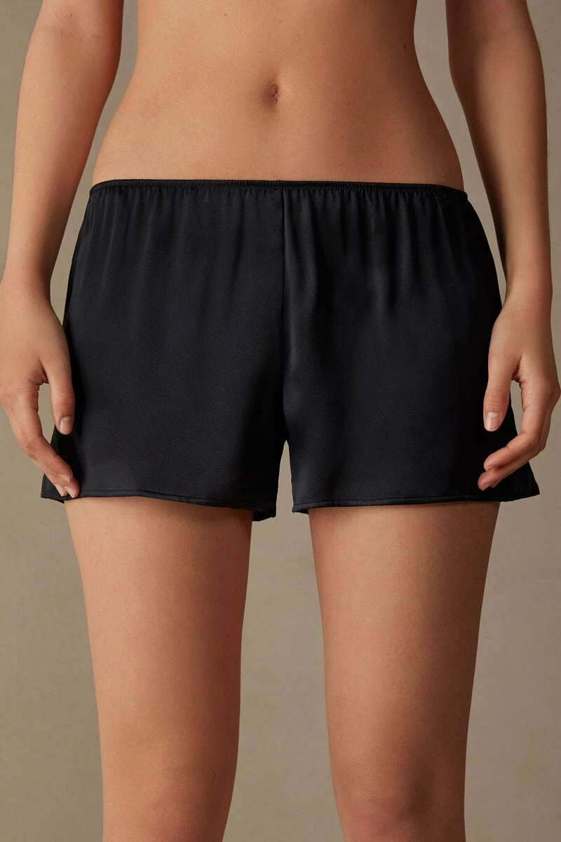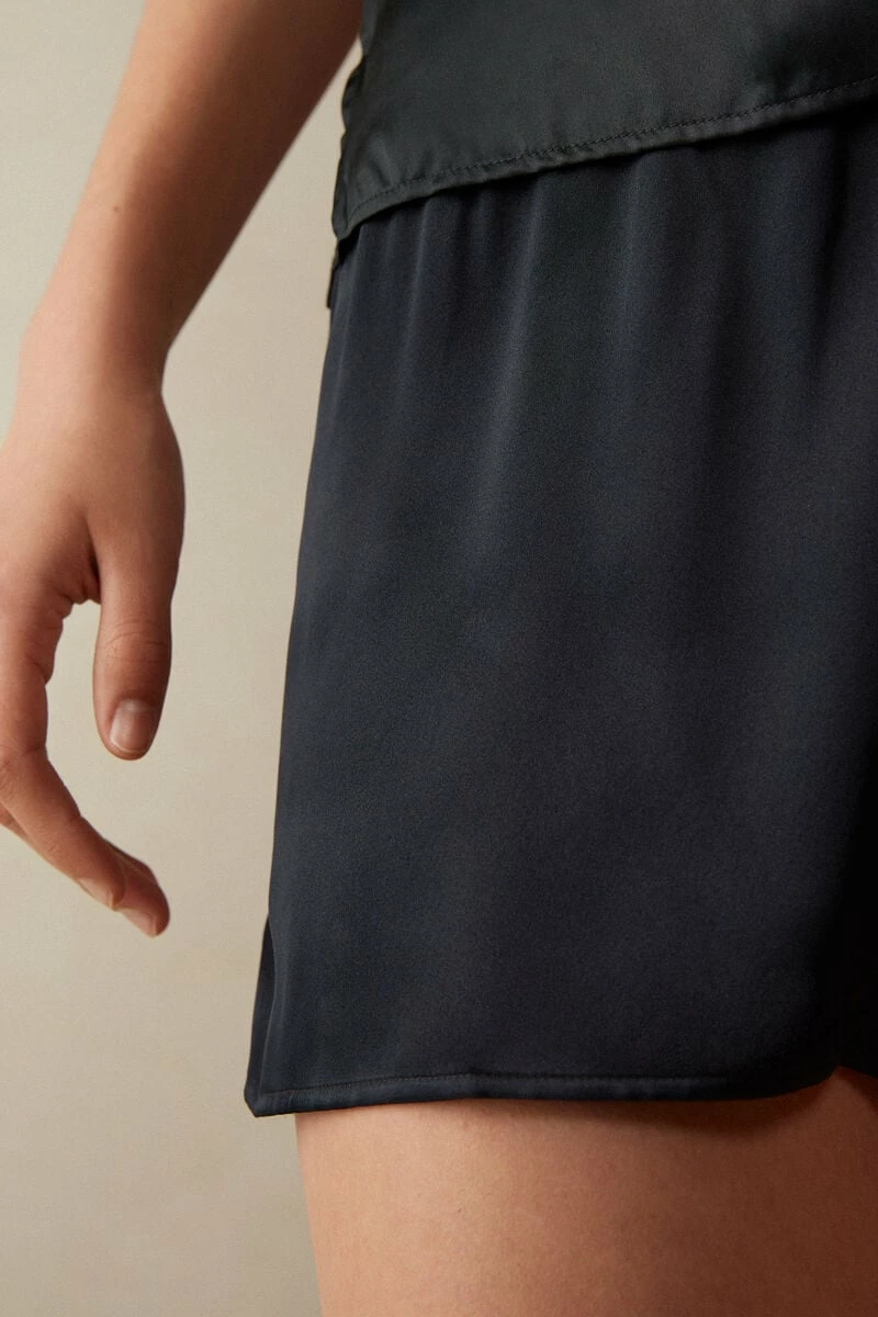 Smooth silk-satin shorts with small slit detail at the sides. Perfect paired with a delicate silk top. The model is 179Â cm tall and wears size S.